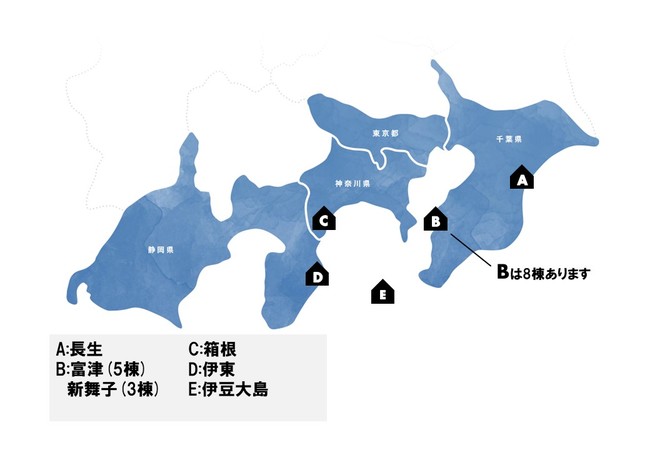 千葉県長生群の貸別荘、スミスのいえ「長生」を2018年よりスタートし千葉県富津市、神奈川県箱根町、静岡県伊東市と、2022年で提携先含め全12棟にまで拡大している。