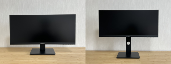 高さ調整ができることで、さまざまな人、さまざまな使用シーンに対応することができます。モニターの高さは、座高や身長に合わせて調節でき、快適な高さを実現できます。