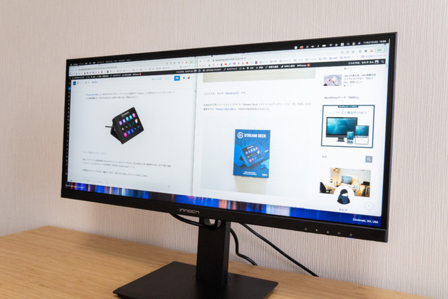 一般的なモニターはアスペクト比16:9であることが多いですが、Innocn 26インチ ウルトラワイドモニター WF26-PROはアスペクト比が21:9となっており、通常よりも横長です。