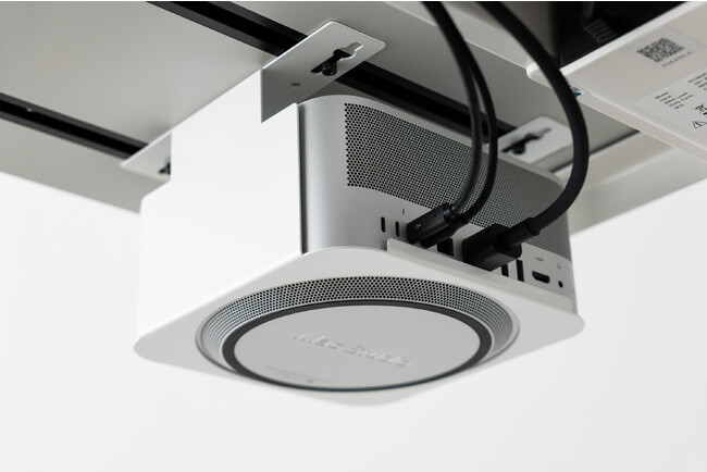 Mac Studio をデスク裏にマウントすることにより煩わしいケーブルもデスク裏に収納し、デスクの上をすっきり広々とご利用いただけるモジュールです。