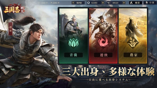 『三国志:戦乱』では新たに「職業システム」が導入されました。プレイヤーは「農家」「青囊」「遊俠」といった異なる役割を持つ職業に就き、それぞれ固有のスキルを活かして戦場で活躍します。同盟の中で役割を分担することで、自分の得意分野を最大限に活かし、より戦略的なプレイが可能になります。