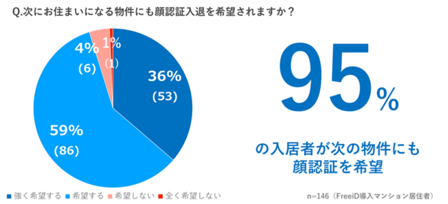 入居者のうち、95%が今後も顔認証マンションに住みたいと回答
