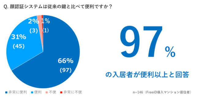 入居者のうち、97%が従来の鍵より”顔認証は便利”と回答