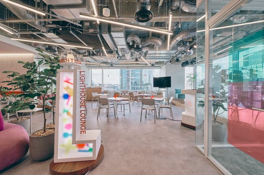 Lighthouse Lounge²:イベント・プレゼンテーション・会議などの各機能をシームレスに統合したハブ空間。カフェエリアを中心とした開放的なしつらえが、偶発的かつ創造的なコミュニケーションを促します。