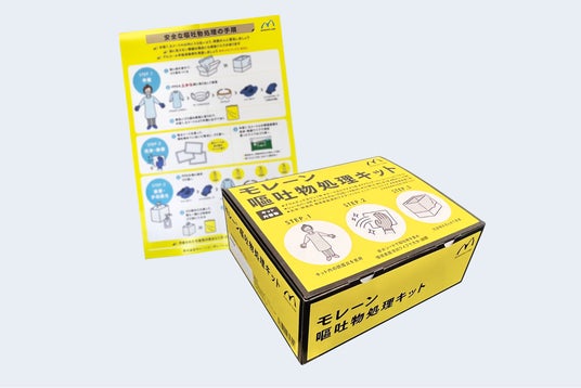 そこで私たちは支援活動の経験を通じて新たに「災害時感染対策備蓄キット」、「嘔吐物処理キット」を開発しました。