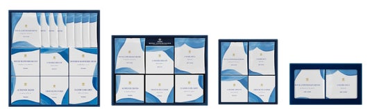 ロイヤル コペンハーゲンで人気のフード&ビバレッジ コレクションが、この度装いを新たにして登場します。季節の贈り物や親しい方への軽やかなプチギフトとして最適なギフトセット4種類と、ティーバッグの単品4種類。いずれも、忙しいあの方に贈りたいコーヒーブレイクのひとときに最適で、また、自身の午後のティータイムが待ち遠しくなる魅力的なラインアップとなっています。 デンマーク王室の保護のもとに開窯したロイヤル コペンハーゲンは、1775年の創設以来、クラフツマンシップと呼んでいる熟練の職人の技をブランドの核として、249年にわたって、その精緻な技と伝統を今日まで大切に守り、受け継いでいます。そして、ブランドを象徴する絵柄であるブルーフルーテッド プレインを始めとする様々な伝統的な絵柄だけなく、より現代的で今日の生活にフィットするような絵柄や作品をも生み出し続けています。 フード&ビバレッジ コレクションのギフトセットは、ドリップコーヒーとティーバッグの両方、そしてクッキーが2種入った午後のひとときに様々な味わいが楽しめるアソートセットや、手軽に楽しめるドリップコーヒーとクッキーのセット、 またドリップコーヒー2種の飲み比べが楽しめるアソートセットをご用意しています。 ティーバッグ(単品)は、選りすぐりのブレンドティー4種類。ストレートでもミルクでも美味しい正統派ブレンドから、柑橘の香りが爽やかなクラシック アールグレイ、そして人気のルイボスを使用したノンカフェインのルイボスラズベリーハーブが揃っています。 今回フード&ビバレッジ コレクションで採用したパッケージは、ロイヤル コペンハーゲンが長きにわたり大切にしてきたクラフツマンシップの象徴でもある、ハンドペイントに焦点をあてたデザインを採用しています。ロイヤル コペンハーゲンのポーセリンの作品は、クラフツマンによりひとつひとつ手描きで絵付けが施されています。その白磁の上を軽快に、また伸びやかに走るブルーのブラシストロークが今回のパッケージデザインのモチーフとなっています。モダンで軽やか、フレッシュな勢いを感じるブラシストロークは、フード&ビバレッジ コレクションを手に取る度に、ロイヤル コペンハーゲンが大切にするクラフツマンシップを思い起こさせてくれると同時に、より一層、食器とのコンビネーションを楽しんでいただけるデザインとなっています。贈り物やご自身のヒュッゲなひとときに、ぜひどうぞ。