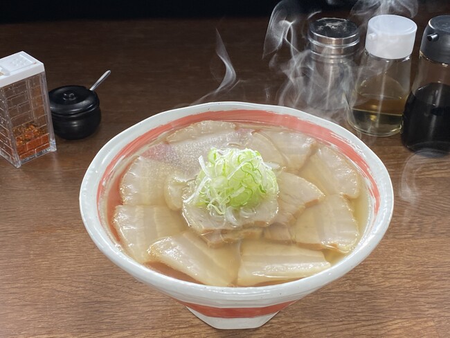 肉盛りそば(塩)はチャーシューがラーメンを覆うようにたっぷり入っていて圧巻のボリュームです。