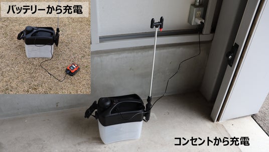 家庭用コンセント、バッテリーのいずれかで充電可能