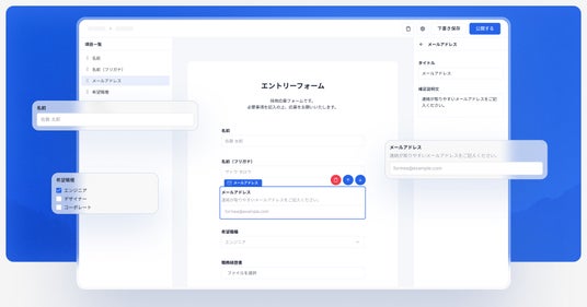 採用応募・問い合わせ・社内申請など、多様なフォームをかんたんに作成・一元管理