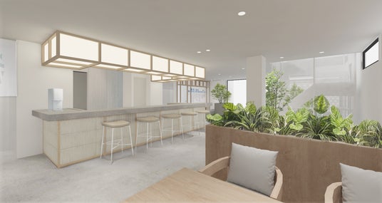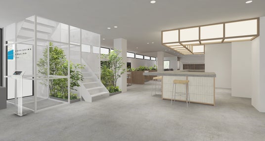 4階建ての新オフィスは「交差する島」をコンセプトに「個」を尊重しながらも点と点、島と島を結びつけるための空間設計が施されています。1階のカフェには地域交流のコミュニケーションスペース、キッズスペース、オーナーラウンジを備えています。2階は顧客体験を向上させるショールーム、3階・4階はフリーアドレスのオフィスで構成されオンラインブースも備えています。屋上はPARK(リフレッシュスペース)として2期工事を予定。各フロアに機能的な特徴を持たせ用途や目的、その日の気分によって活用するエリアを横断し交差することで、日々のコミュニケーションや出会いから偶然生まれる“気づき”や“ひらめき”を活かした新たな価値創造をめざします。