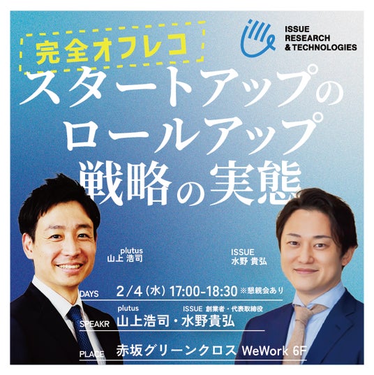 その第一弾として、2026年2月4日(水)、スタートアップの成長戦略として注目される「ロールアップ戦略」の核心に迫るCEO限定セミナーをPLUTUS GROUP(本社:東京都千代田区、代表取締役社長:野口真人)と共催いたします。
