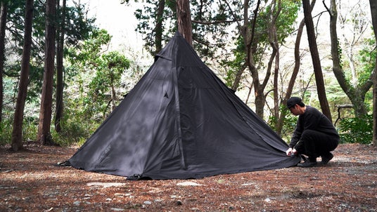4隅をペグダウンでOK!手軽にブラックキャンプを楽しめるワンポールTCテント