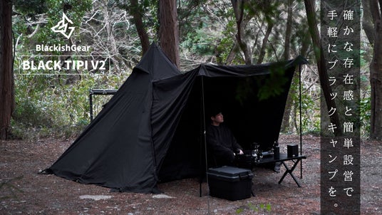 黒いキャンプギアを追求するアウトドアブランドBlackishGearは応援購入サービスMakuakeにて「BLACK TIPI V2 (ブラックティピーV2)」のクラウドファンディングを2024年5月18日(土)11:00よりスタートいたします。