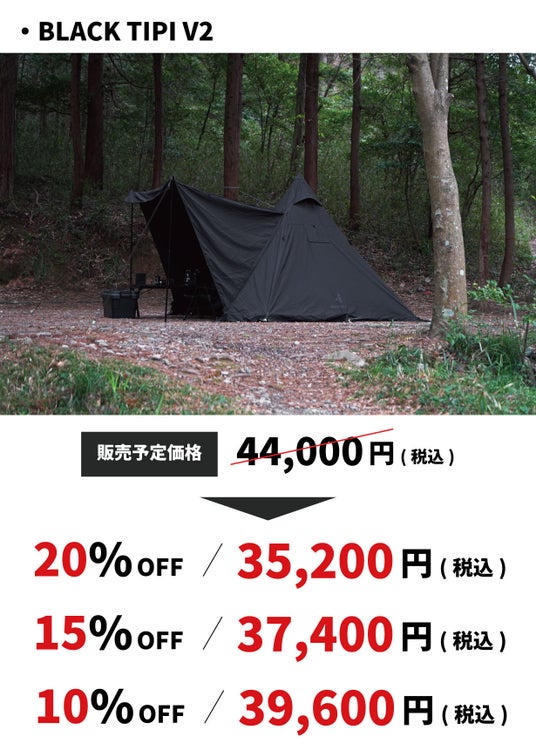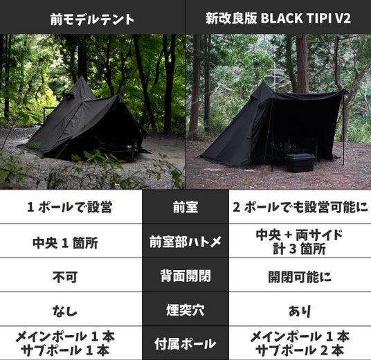 好評につき完売となったBLACK TIPI (ブラックティピー)が進化、V2(バージョン2)となって再登場!