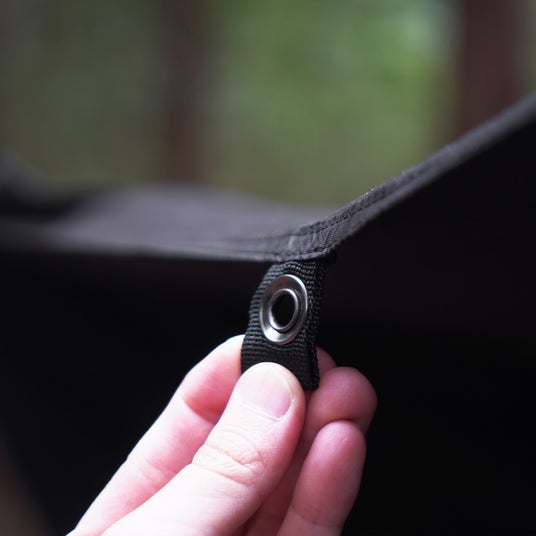 キャノピーの両サイドと中央に3箇所ハトメが付いているので、これを活用して自分のスタイルに合った様々なカスタマイズを楽しむことができます。