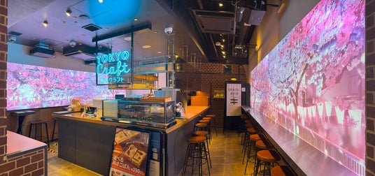 3社はこれまで約1年間、2025年3月に東京駅一番街にオープンした「TOKYO Craft BEER STAND」の空間プロデュースを通じて協業を重ねてきました。このプロジェクトでは、飲食店の業態転換に伴う基本設計・実施設計・設計監理・映像演出を一貫して実施。各社が持つ強みを最大限に発揮しながら、空間・デザイン・テクノロジーを融合した店舗体験を実現しました。