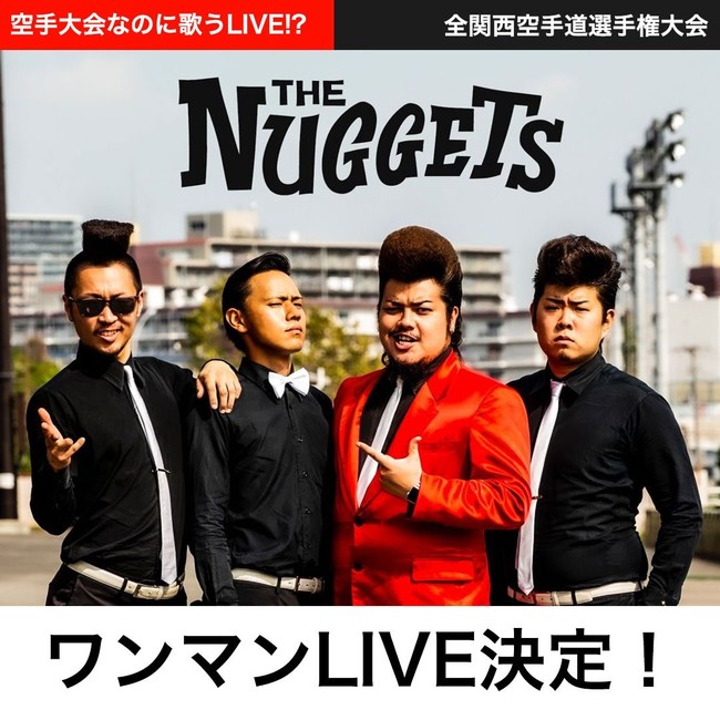 これにともない地方にいる方々により安全に試合を観て頂く為にライヴ配信にて大会模様を配信する事になりましたが、空手だけでなく音楽業界もコロナでのイベント開催制限によるダメージを受けておる実状を知りここに『空手大会×音楽ア―ティストライヴ配信コラボイベント』を実現しました。このイベントに名乗りを上げてくれた「THE NUGGETS」も会場には来れませんがライヴ配信で盛り上げてくれます。