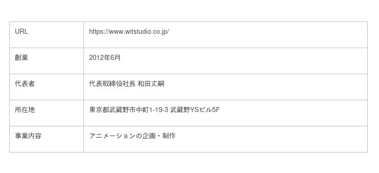 ◼︎株式会社ウィットスタジオ(WIT STUDIO,Inc.) 会社概要