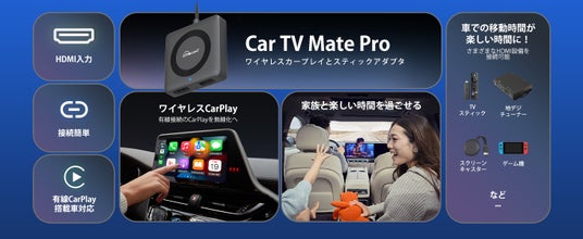 実用的で、装着簡単な車載用電子パーツブランド「Ottocast(オットキャスト)」では、Androidを搭載したCarPlay接続のAI BOXを取り扱っている他、どんどん新商品がリリースしてきました。今回紹介する「Ottocast スティックアダプター Car TV Mate」は、車にHDMI入力が無くても、CarPlay対応ディスプレイオーディオに有線接続でHDMI出力の地デジチューナー/TV Stick/ゲーム機器が楽しめるようになる画期的な商品です。またカープレイをワイヤレスでも使えるProバージョン「Car TV Mate Pro」も登場しました。
