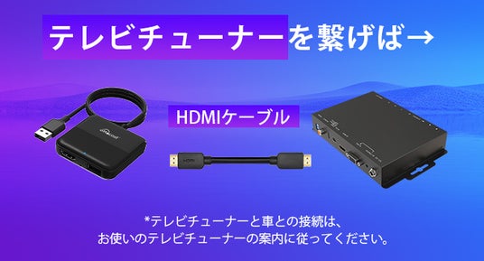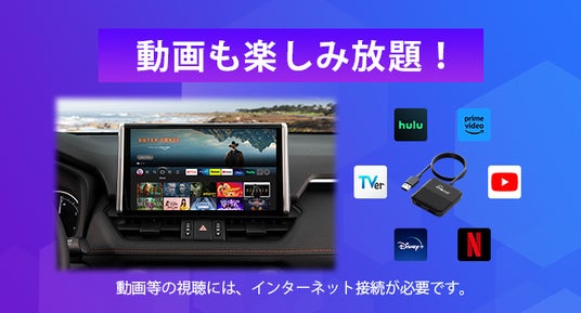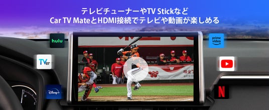 USBケーブルで車両に接続するだけで起動完了車両への取り付けはご自身で手軽に行えます。プロに施工を依頼する必要がないため、取り付け工賃などは必要ないのも特徴です。CarPlay対応モニターに本TV Mateアダプターを挿して、TV Stickなどのストリーミングメディアプレイヤー、地デジチューナーやゲーム機等の外部HDMIデバイスを簡単に接続することで、車カーナビでユーチューブやネットフリックスなどを観ることができます。