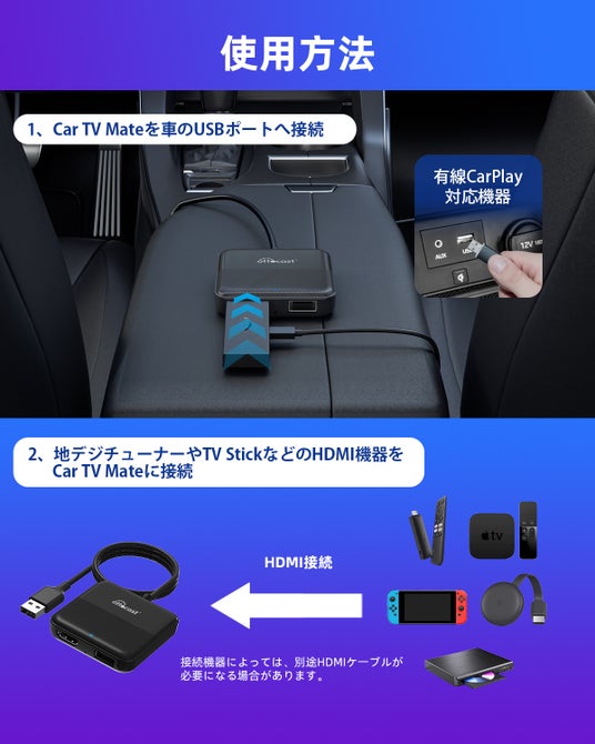 HDMI-CarPlay変換で車内で動画を快適に視聴!