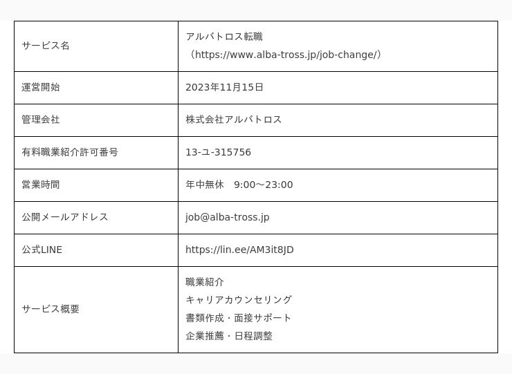 この度2023年11月15日より、退職代行サービス事業のデータをもとに、より多くの労働者のお力になれるように、優良企業に絞って紹介する転職支援サービスとして『アルバトロス転職』を開始いたしました。