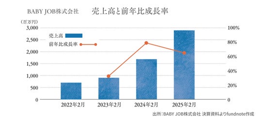 保育施設向けに提供している紙おむつのサブスクリプションサービス『手ぶら登園』は、国内トップシェアを誇ります。3年間の年平均成長率(CAGR)は64%に達し、多くのグロース上場企業を上回る成長を遂げており、直近の期には黒字化も実現しています。
