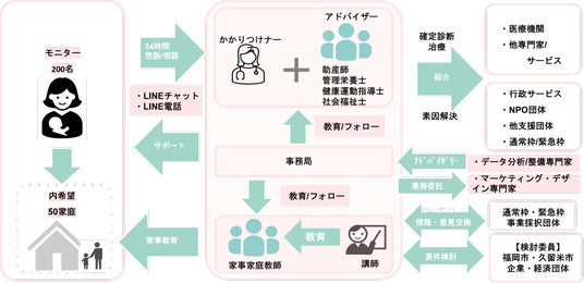 本事業では、子育て世帯が一人で不安不調を抱え込むことなく、安心して健康的な暮らしを営むことを目的とし、かかりつけナースチャットサポートと家事サポーターによる家事の家庭教師を対象地域在住のモニター子育て世帯200名に対し実施します。実施にあたり、かかりつけナースチャットサポートと家事の家庭教師のモニターを募集します。