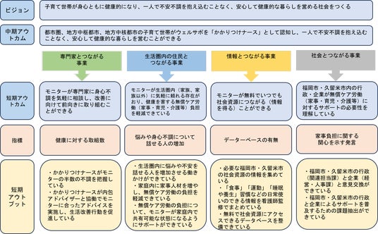 その他にも、福岡市や久留米市の医療福祉施設、行政窓口、NPO等の社会資源や、身心の不調を改善する「食事」「運動」「睡眠・養生」習慣改善情報をとりまとめ、データベース化する「情報とつながる事業」、上記事業で明らかとなった子育て世帯の現状と課題などの成果をまとめたハンドブックを作成し、事業から見えてきた「地方中枢都市・中核都市の子育て世帯の状況と課題」について社会に認知と理解を求めることを積極的に行う「社会とつながる事業」も合わせて実施いたします。