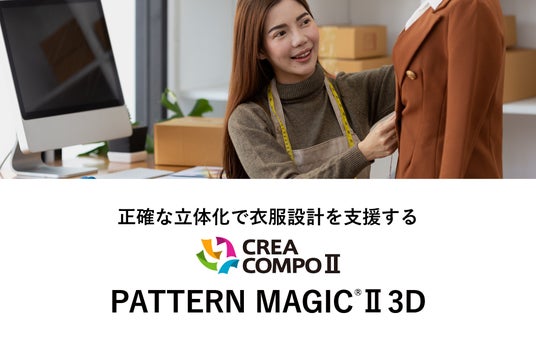 3Dバーチャルフィッティングソフト PATTERN MAGIC(R)II3D は、CREACOMPO(R)II のラインナップの1つで、2Dで作成したパターンを簡単に素早く3Dボディに着せ付けてトワルチェックができ、アパレルの設計工程の圧倒的な時間短縮とコスト削減を支援します。
