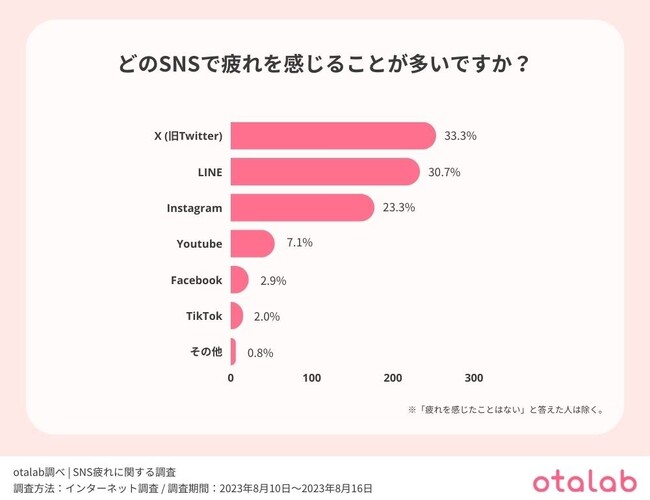 最も疲れを感じることが多いSNSは『X(旧Twitter)』