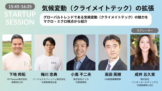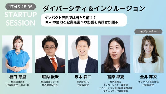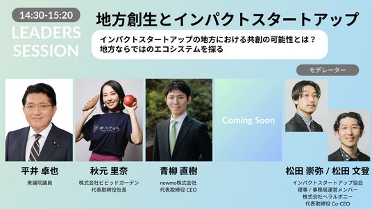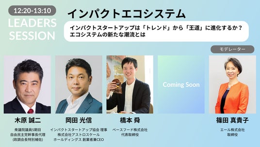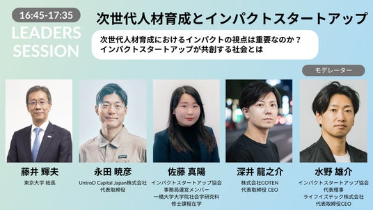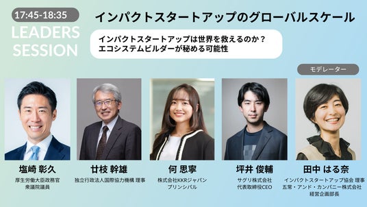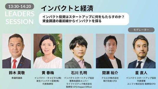 インパクトスタートアップの最前線をテーマとしたスタートアップセッションでは、インパクトスタートアップの経営陣が数多く登壇し、各社が取り組む社会課題をはじめ、事業の魅力や成長可能性などについて語ります。