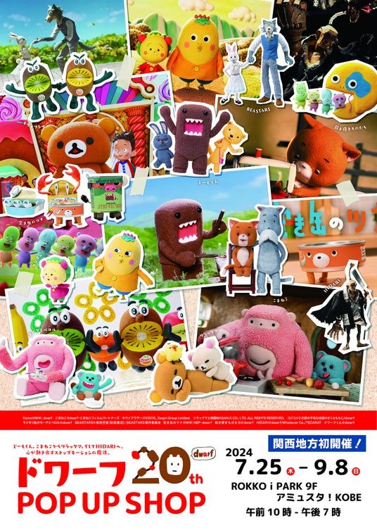 『ドワーフ20th POP UP SHOP』も同時開催ドワーフ20周年ショップ限定のグッズを販売いたします。その他、こまねこやコジコジ、どーもくん、リラックマなどの商品も大集合。