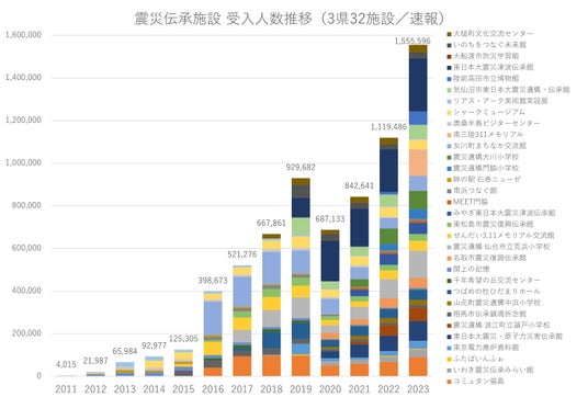 ・2022年の年間震災伝承施設来館者数(35施設の合計)は155,596名。