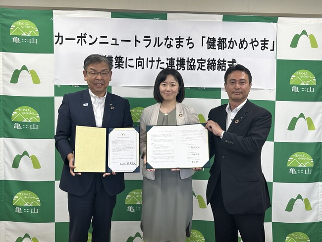 写真は「カーボンニュートラルなまち『健都かめやま』の構築に向けた連携協定」締結時の様子です。