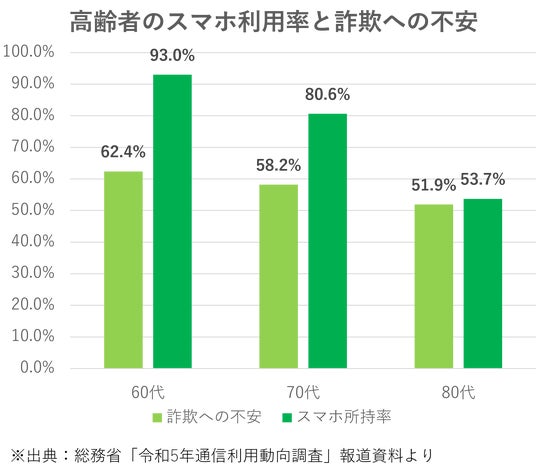 加えて、同調査では60代の62.4%、70代の56.9%、80代の51.9%が「架空請求やネット詐欺にあうことへの不安」を抱えていると回答しており、高齢層の不安感は依然として高い水準にあります。