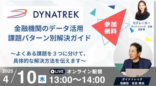 株式会社ダイナトレック(本社:東京都港区、代表取締役:佐伯 譲二、以下「ダイナトレック」)は、日本全国の約30の金融機関でのデータ統合・データ活用プロジェクトを展開しております。この度、ダイナトレックでは、地域金融機関のDX推進を加速する「DYNATREK BI Platform」を用いたソリューションについて、金融機関様向けオンラインセミナーを開催いたします。