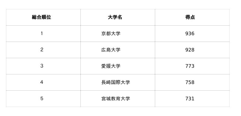 こちらで「障害学生支援ランキング」総合順位5位までを紹介いたします。