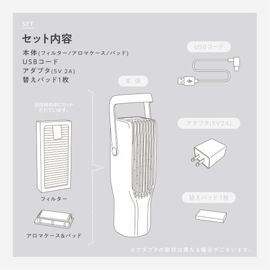 電源 : USB充電式(USB/AC変換アダプタ付属)