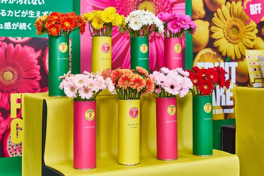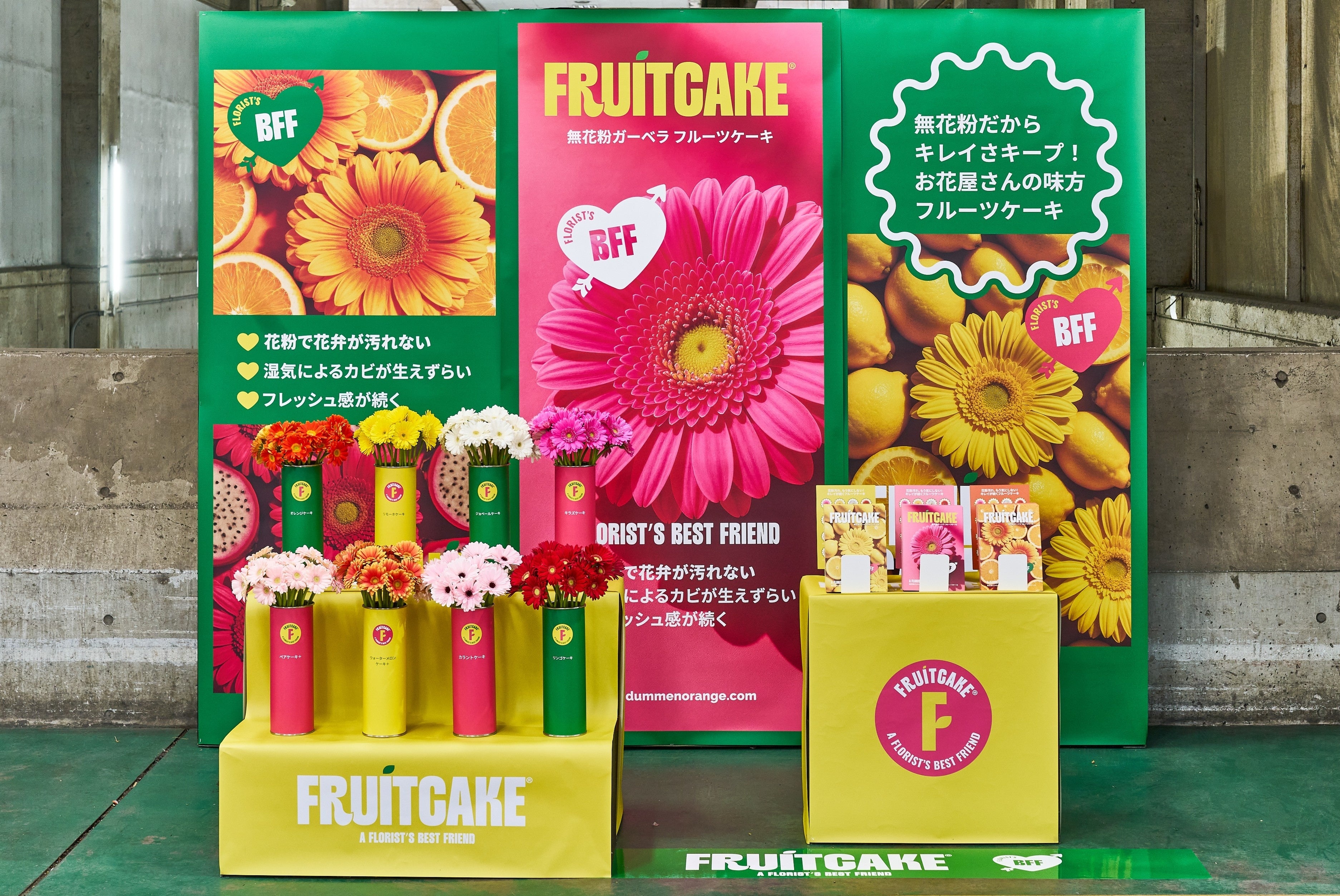 デュメンオレンジジャパン株式会社(以下、当社)は、無花粉ガーベラとして展開してきた「フルーツケーキ」シリーズを、ひとつのブランドとして正式に発表し、その第一歩として日本最大級の花き流通拠点である大田市場にてショーケース展示を実施しました。