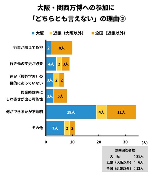 ・なぜ万博がを開催するのかわからない、莫大な税金を使うべき道が他にたくさんある、などすでにたくさんの生徒が疑問をはっきりと表明しています。教師も納得していない、生徒も疑問に思っている状態で、どのようなモチベーションで意義ある取り組みにできるのか、全く見えてきません。