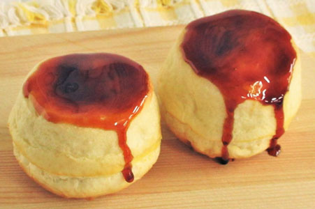 カラメルソースをかけたまるで本物のプリンのようなかわいいパン。