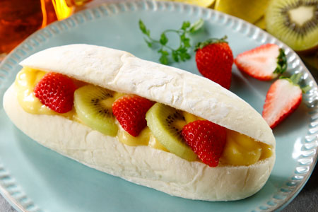 豆乳や大豆ペーストで作られた優しい甘さのカスタードフィリングに、いちご・キウイフルーツの甘酸っぱさが良く合います。