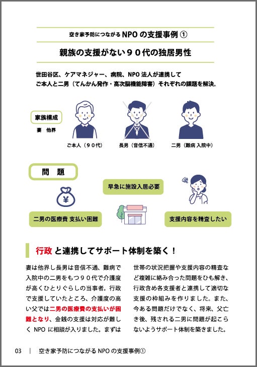 この度、これらの支援内容をまとめた「空き家予防 事例集」を作成する事で、世田谷区をはじめ全国で社会問題となっている「空き家問題」の一助になればと考えております。