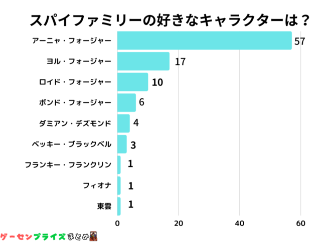 100人にアンケートを行ったところ、「アーニャ・フォージャー」と回答したのは全体の57.0%でした