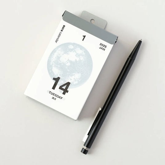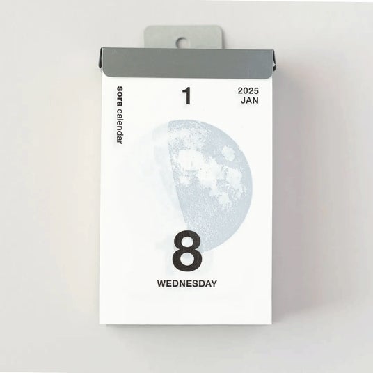 「宙(そら)の日めくりカレンダー」の最大の特徴は、毎日のページのまんなかに大きくデザインされた「月のかたち」。日々の月の満ち欠けから時間の経過を感じたり、お部屋のインテリアとして楽しむことができます。