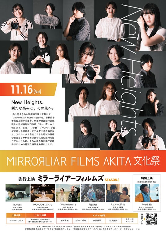 「MIRRORLIAR FILMS Season5」および「参画屋の仔羊たち」は、3月16、17日に開催した「MIRRORLIAR FILMS AKITA 上映祭」で先行上映したほか、全国劇場上映、動画配信サービスでの配信、国際的な映画祭でも上映され、制作過程の発信も行うことで、「若者の挑戦を応援するまち」というメッセージを広く発信してきました。