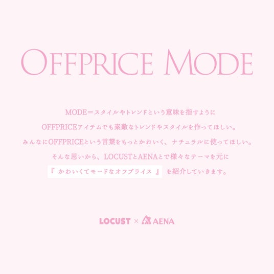 企画名である「OFFPRICE MODE」の『MODE』には、スタイルや流行といった意味があり、オフプライスのアイテムを通じてトレンドを取り入れたり、自分だけのスタイルを楽しんでいただきたいという願いが込められています。
