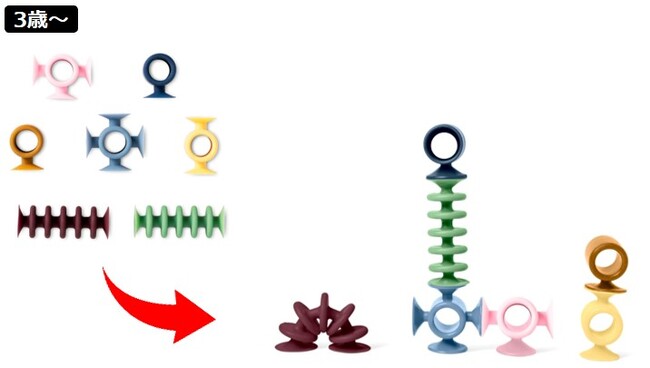 吸盤と吸盤をひっつけて、ポンっと外す!繋げて楽しむ、外して楽しむ。感触と音がやみつきになるアイテムです。