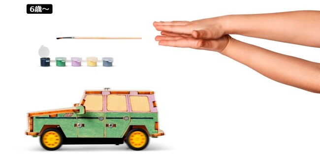 付属の絵具で車を塗って、電池を入れて、手を叩くと・・発進!叩く回数や大きさで色んな走り方が楽しめる!